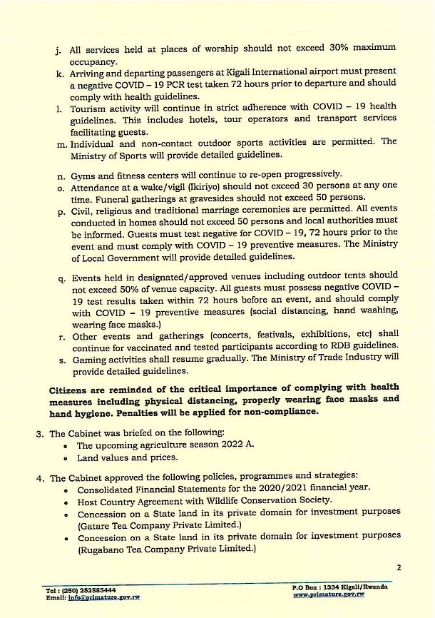 Cabinet Resolutions of 21st September 2021